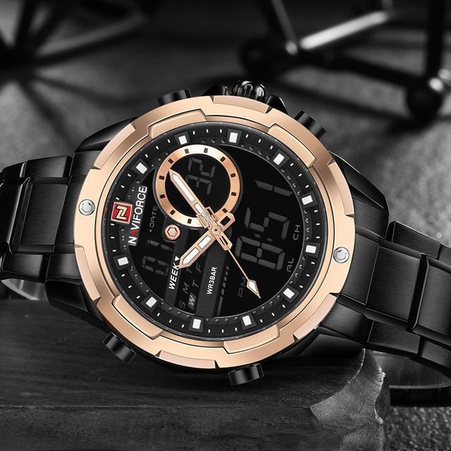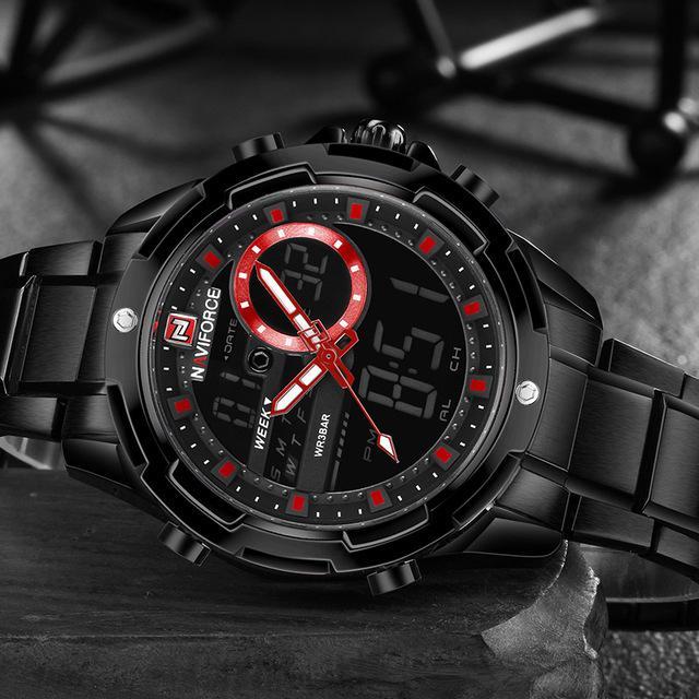 Feature: Complete Calendar,Luminous Hands,Week Display,Water Resistant,Back Light,Chronograph,Multiple Time Zone,LED display,Alarm