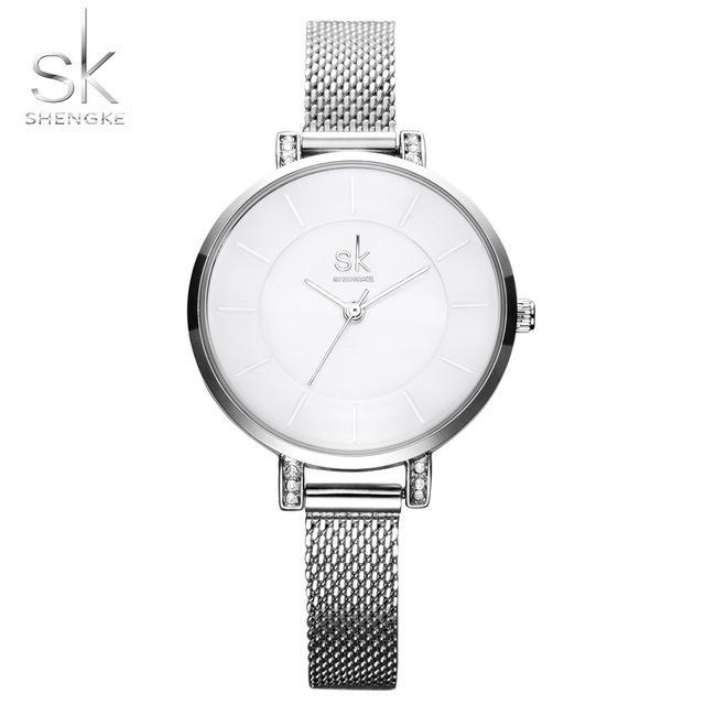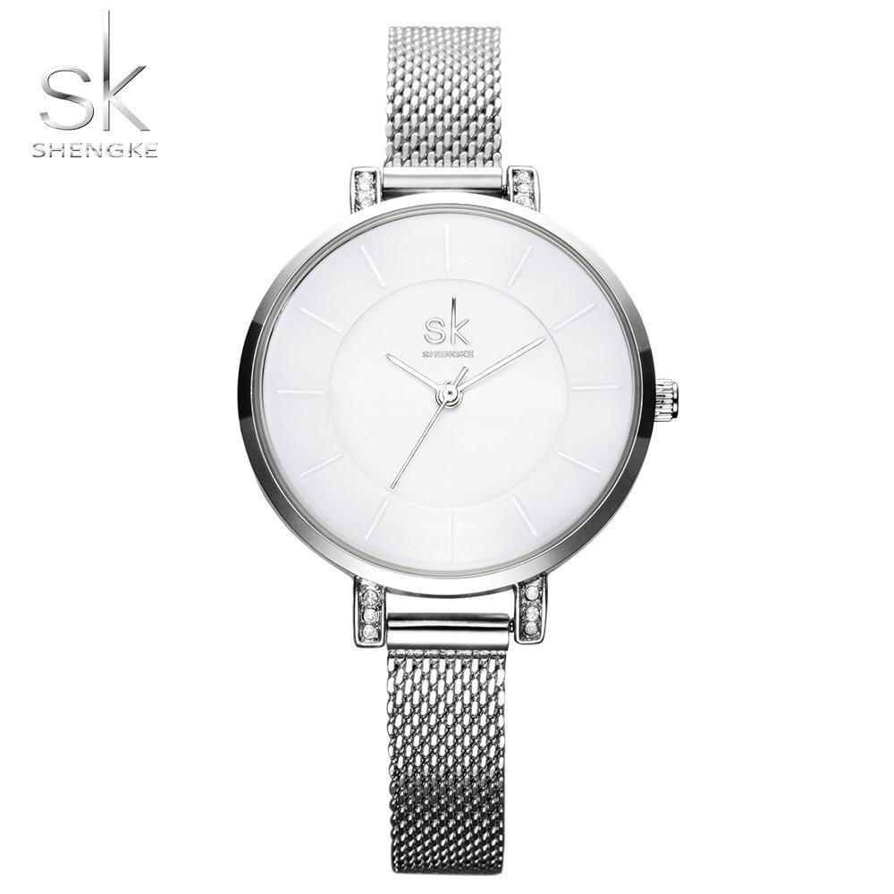 Shengke Women Watches 2017 Fashion Ladies Wrist Watch Stainless Steel Band Gold Silver Bracelet Quartz Watch Relogio Feminino SK